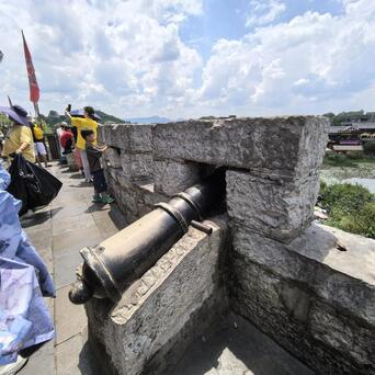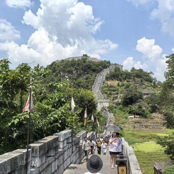青岩古镇是属于屯堡一类的军民两用建筑,地处军事要塞,兵家必争之地,所以除了四座古老的城门,还有厚厚的城墙,修建在山坡上的城墙,像极了我们著名的万里长城,当然规模上不能比!